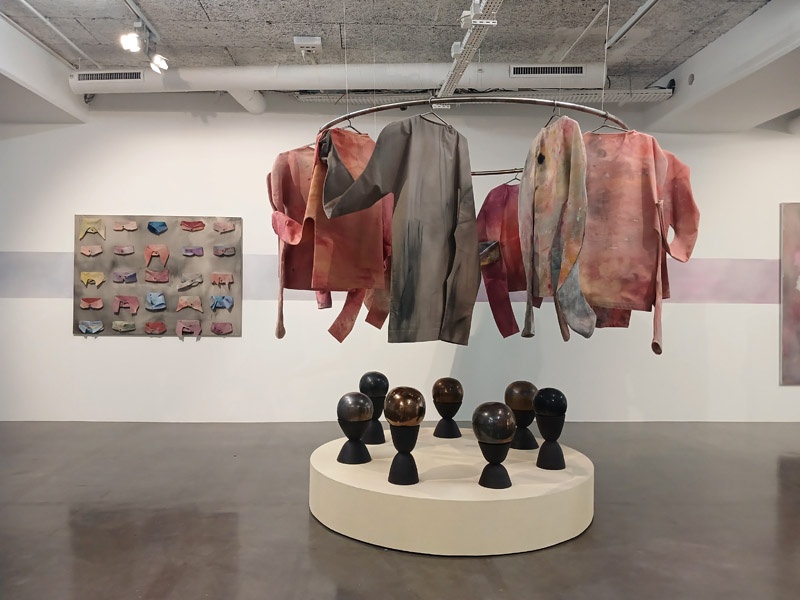 Camera Ballet prend la forme d’un ensemble immersif, dans lequel le public circule parmi des peintures-objets, des sculptures textiles, des vidéos et des dispositifs performatifs, dont une grande partie sont nouvellement créés. Mathilde Denize y compose un véritable théâtre de matières et de présences, une sorte de chorégraphie silencieuse où les formes s’animent. Camera Ballet engage à voir autrement, à laisser vagabonder le regard et à le mettre en mouvement, pour donner naissance à des formes et figures fugitives.