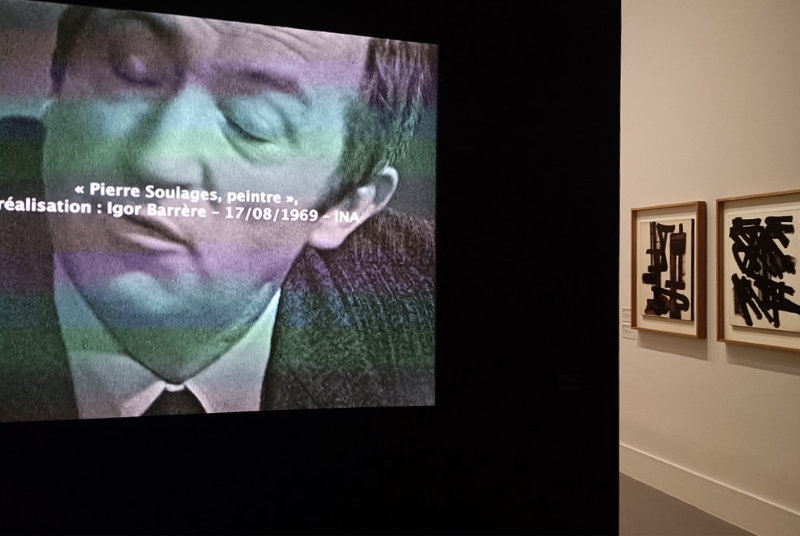 Pierre Soulages a toujours refusé d’établir une hiérarchie entre les différentes techniques qu’il utilise. À côté des peintures sur toile, il est également l’auteur d’un ensemble considérable de peintures sur papier qu’il a mené, avec quelques interruptions tout au long de son parcours pictural, jusqu’au début des années 2000. D’une certaine façon, on peut dire que son oeuvre commence sur le papier avec, dès 1946, des peintures aux traces larges et affirmées, réalisées au brou de noix, qui vont véritablement voir son oeuvre se distinguer des autres démarches abstraites de l’époque.