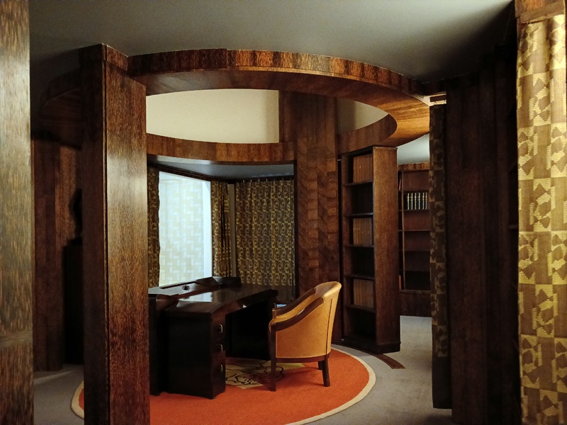 Le musée des Arts décoratifs a joué un rôle central dans la reconnaissance de l’Art déco dès ses débuts, en accueillant les salons de la Société des Artistes décorateurs et en constituant une collection d’une richesse exceptionnelle. L’exposition « 1925-2025. Cent ans d’Art déco » puise dans ce fonds remarquable, enrichi d’oeuvres prêtées par de grandes institutions et collections privées, pour présenter des pièces emblématiques : le chiffonnier en galuchat d’André Groult, les créations raffinées de Jacques-Émile Ruhlmann, ou encore le spectaculaire bureau-bibliothèque de Pierre Chareau conçu pour l’Ambassade française, réinstallé à cette occasion. Trois créateurs phares – Jacques-Émile Ruhlmann, Eileen Gray et Jean-Michel Frank – y sont mis en lumière, incarnant chacun une facette singulière de l’Art déco.