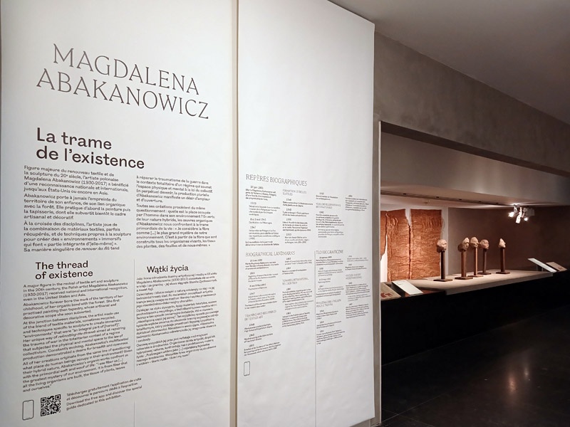 Dans les 600mÂČ de lâaile Portzamparc, dont les murs de bĂ©tons ont Ă©tĂ© rĂ©novĂ©s pour lâoccasion, lâexposition met lâaccent sur la production sculpturale d’Abakanowicz afin de redonner Ă lâartiste sa place parmi les grands sculpteurs du 20e siĂšcle. Le sous-titre de l’exposition, « La trame de l’existence », associe deux termes employĂ©s par l’artiste pour dĂ©finir son Ćuvre. Elle envisageait le tissu comme lâorganisme Ă©lĂ©mentaire du corps humain, marquĂ© par les alĂ©as de son destin.