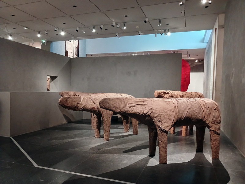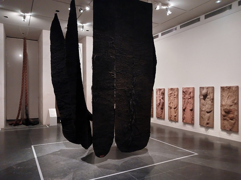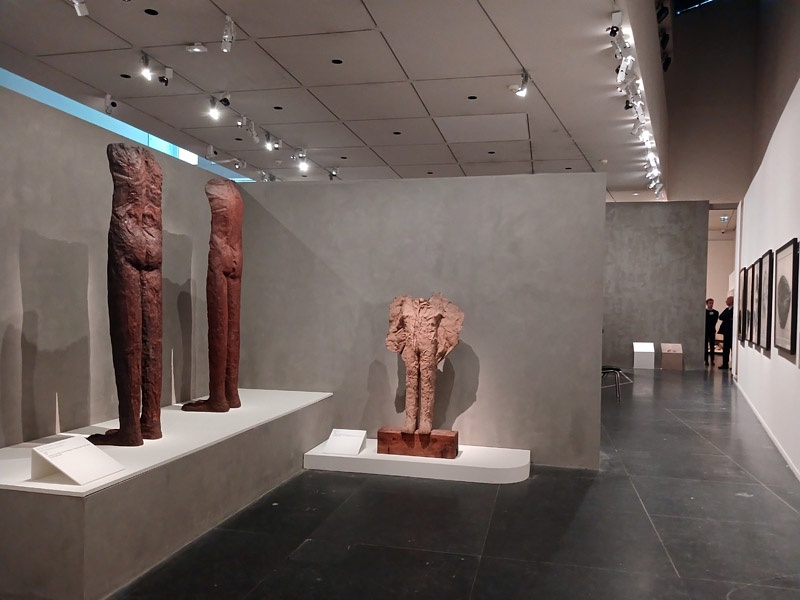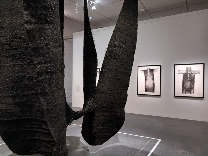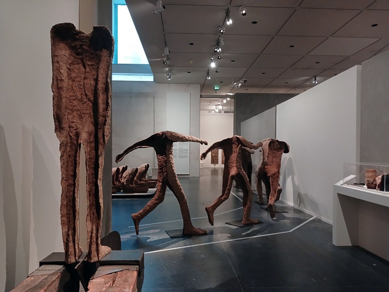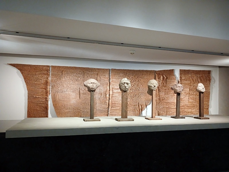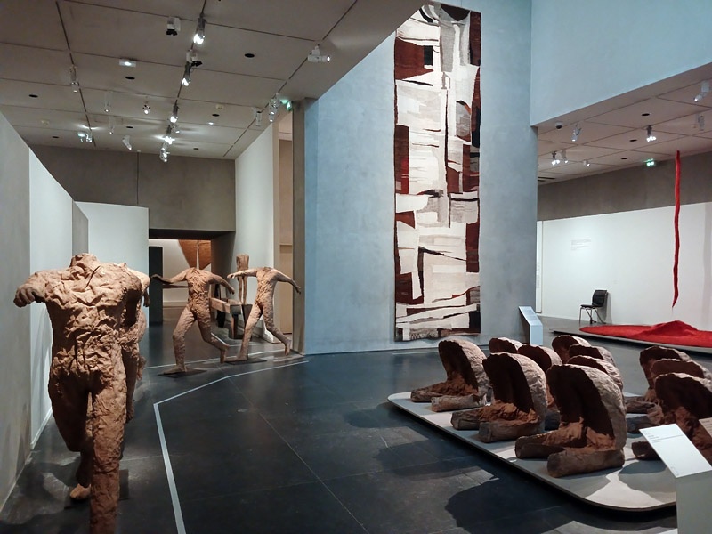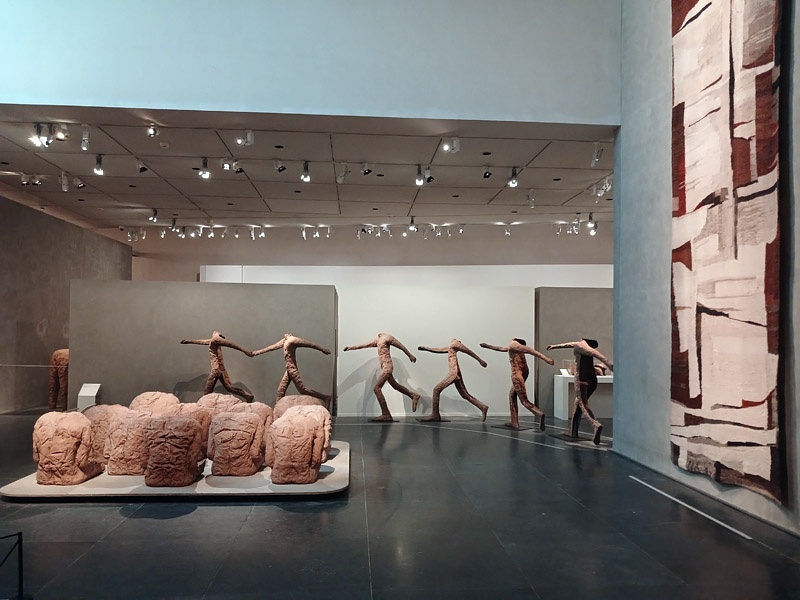 Dans le couloir de l’aile Portzamparc, la premiĂšre partie donne un aperçu de lâampleur de la production de Magdalena Abakanowicz : piĂšces textiles des dĂ©buts, sculptures de petits formats (souvent anatomiques), dessins et projets pour lâespace public.