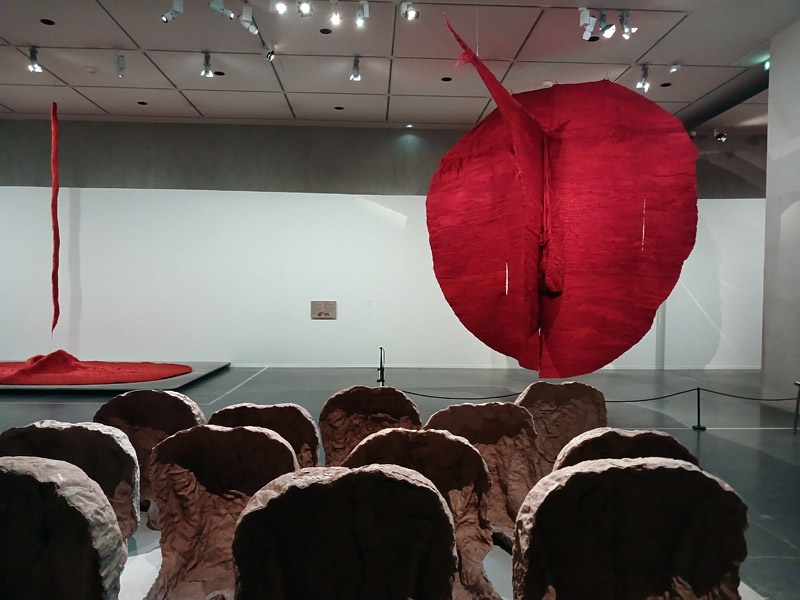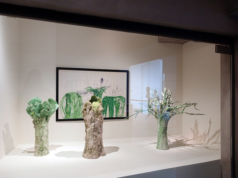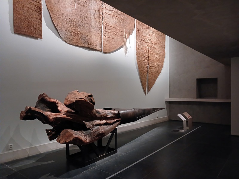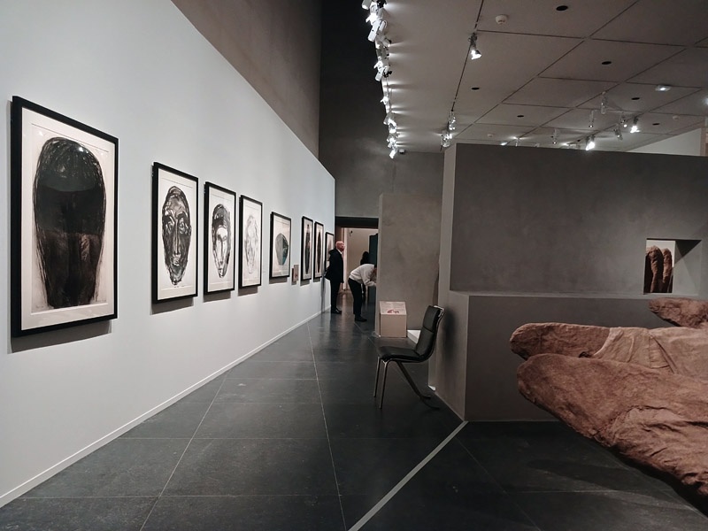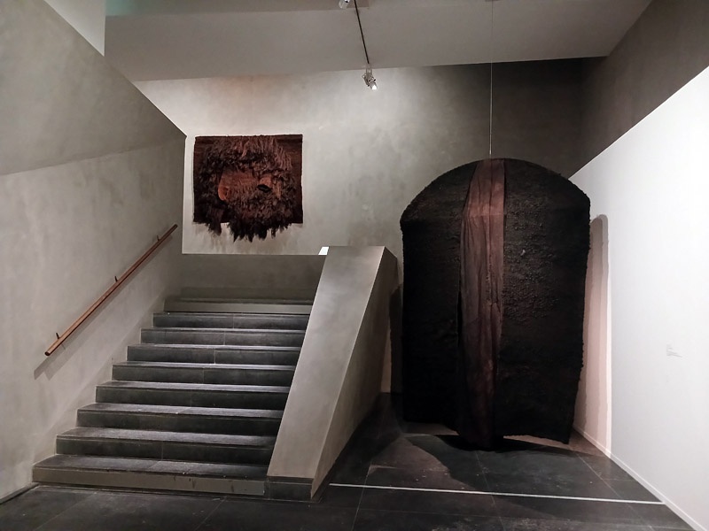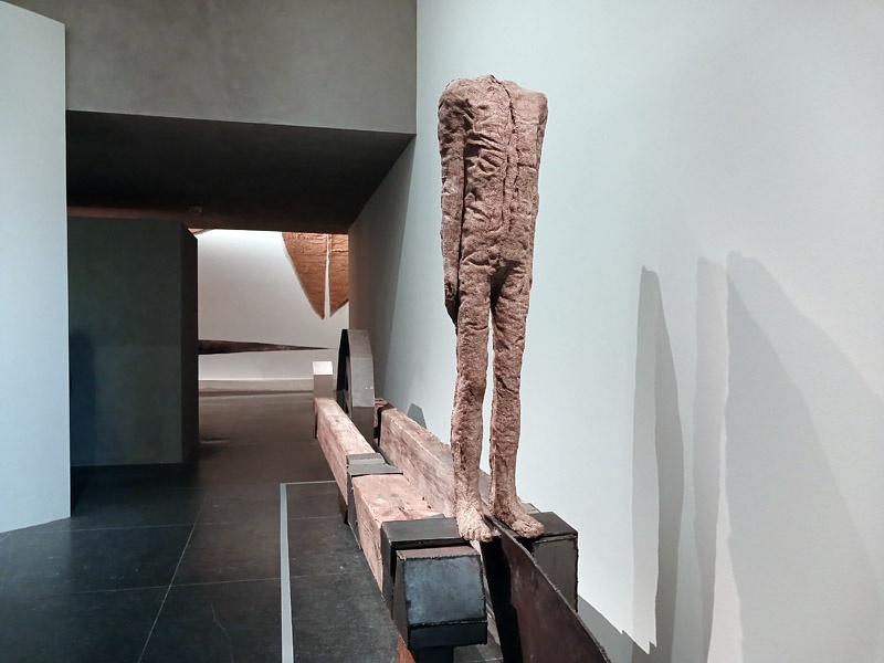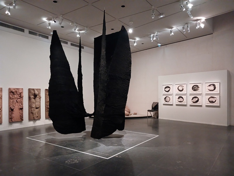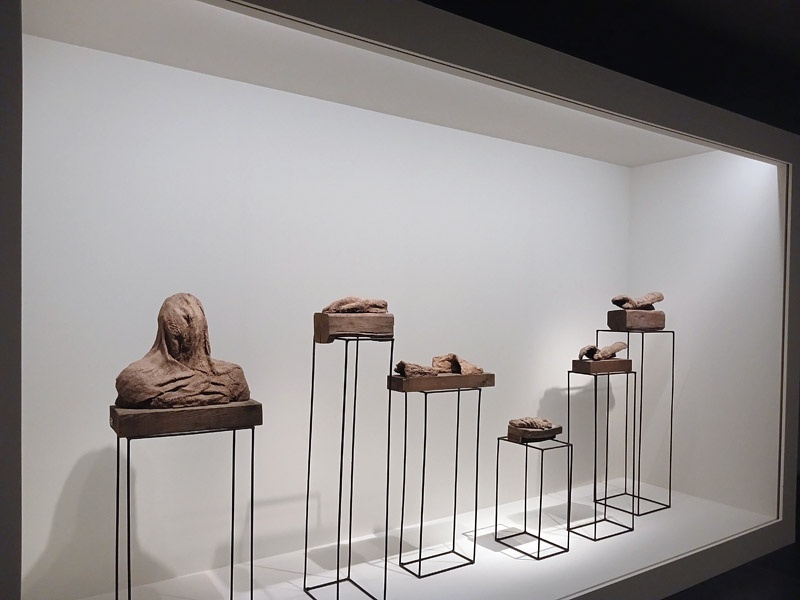 Dans le couloir de l’aile Portzamparc, la premiĂšre partie donne un aperçu de lâampleur de la production de Magdalena Abakanowicz : piĂšces textiles des dĂ©buts, sculptures de petits formats (souvent anatomiques), dessins et projets pour lâespace public.