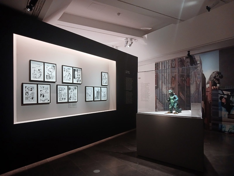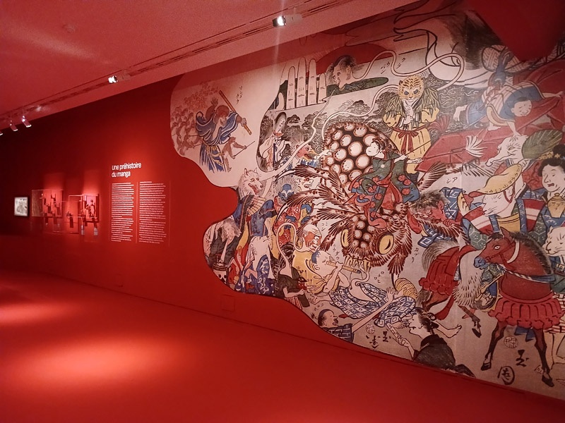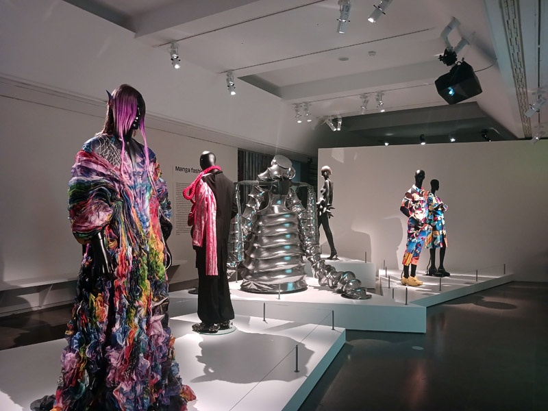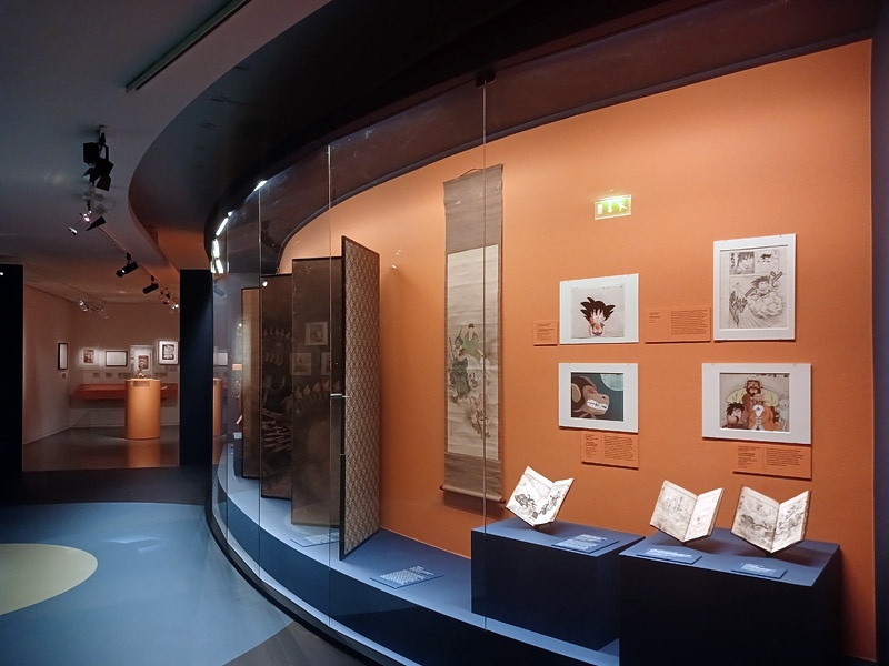 MANGA, TOUT UN ART ! lève le voile sur la naissance et l’évolution complexe de la bande dessinée japonaise de la fin du 19e siècle à nos jours. Après avoir exploré les influences occidentales, la presse satirique, les premiers pas du dessin animé, le kamishibai (forme de théâtre de rue pour enfant) et la créativité d’Osamu Tezuka, le père du Manga moderne, l’exposition nous plonge dans la contre-culture et les revues qu’elle a suscitées, les nouvelles narrations et les jeux entre les genres ; elle revisite les titres bien connus de la pop culture japonaise établissant un dialogue entre leurs personnages et les collections du musée. Le premier volet de l’exposition se termine sur la présentation de robes de haute-couture inspirées par la culture manga.