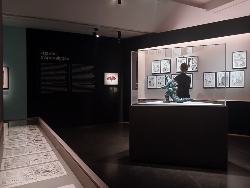 En écho à cette première galerie, une salle sera consacrée à la mondialement célèbre estampe de Hokusai, Sous la grande vague au large de Kanagawa, et à ses reprises dans les mangas et la BD franco-belge.