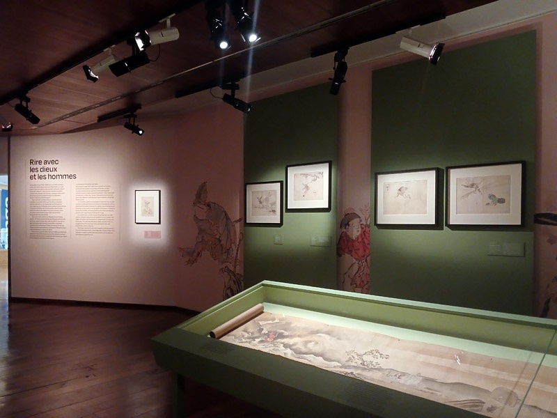 Le troisième volet de l’exposition invite le visiteur à la découverte de l’univers méconnu des rouleaux peints et livres illustrés des 18e et 19e siècles, considérés pour l’occasion du point de vue de l’art des mangas et de ses procédés graphiques. Des bulles de rêve et des dialogues dans les images aux représentations des rayons de lumières et des flatuosités explosives, ces oeuvres témoignent de l’étendu des registres de l’art narratif japonais, de l’humour le plus désopilant aux récits les plus édifiants.
