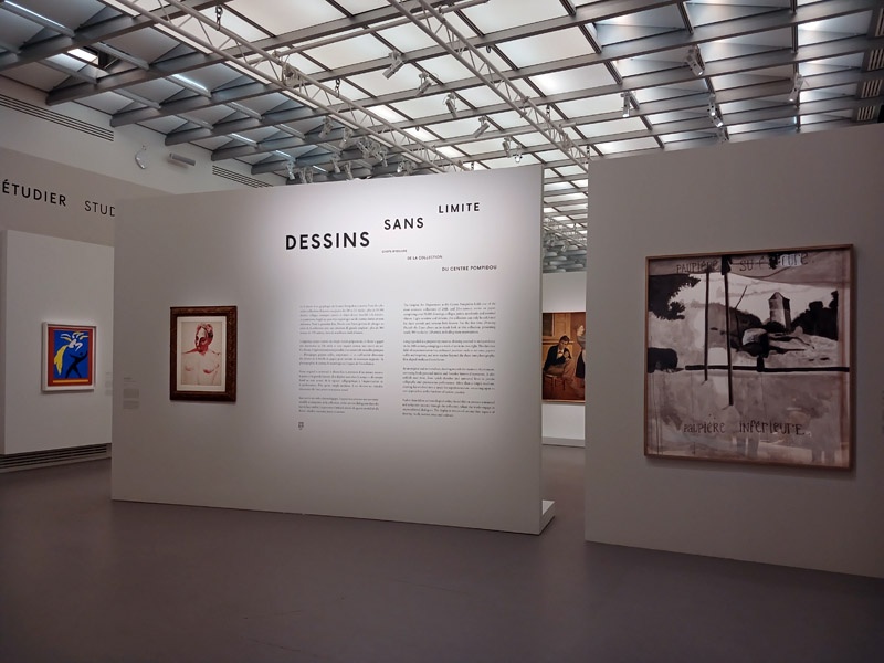 L’exposition Dessins sans limite met à l’honneur des pièces majeures de la collection rarement montrées notamment des oeuvres de Balthus, Marc Chagall, Willem de Kooning, Sonia Delaunay, Jean Dubuffet, George Grosz, Vassily Kandinsky, Paul Klee, Fernand Léger, Henri Matisse, Amedeo Modigliani, Pablo Picasso, mais aussi Karel Appel, Jean-Michel Basquiat, Roland Barthes, Robert Breer, Trisha Brown, Marlene Dumas, William Kentridge, Robert Longo, Giuseppe Penone, Robert Rauschenberg, Kiki Smith ou encore Antoni Tàpies. Elle ne s’interdit pas d’aller au-delà du champ de la feuille de papier pour considérer le dessin en tant que performance, installation, ou bien encore dans sa forme