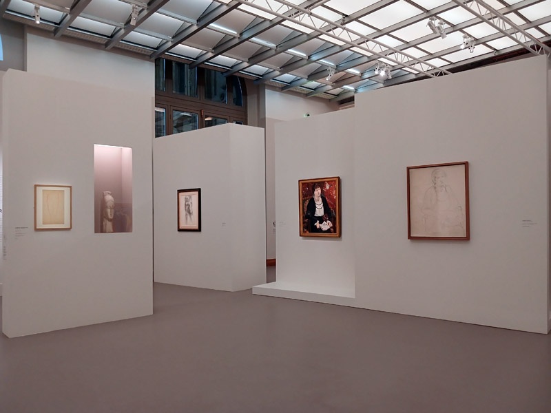 Des dessins de Balthus qui ressemblent à de la gravure sont des illustrations pour les Hauts de Hurlevent. Balthus en fait un univers sombre aux personnages à têtes trop lourdes pour leurs corps maigres, remplit les cases d’une tension érotique cédant face à la violence. Les traits de plume ont l’animalité de coups de griffes. Quelques traits de Modigliani, rien, on les compte sur les doigts d’une main, affirment son identité si forte. On passe d’un Nu féminin de Jean Fautrier, statue massive aux reflets de bronze au minimalisme descriptif, formalisme fin comme un fil d’Ellsworth Kelly.