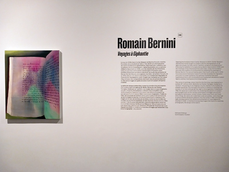 Lorsqu’en 2003, Henri Cartier-Bresson et Martine Franck créent la Fondation, ils souhaitent en faire un lieu dédié aux photographes de toutes tendances et générations, mais aussi aux « peintres, aux sculpteurs et aux dessinateurs ». Après l’exposition des sculptures d’Alberto Giacometti en 2005, puis des dessins de Saul Steinberg trois ans plus tard, la Fondation renoue aujourd’hui avec cette tradition d’ouverture en faisant découvrir au public les peintures de Romain Bernini. Depuis une vingtaine d’années, cet artiste français, né en 1979, élabore une oeuvre imposante, à la croisée de la figuration et d’une forme d’ésotérisme urbain. Il saisit des moments qui sont autant d’hypothèses. Ses compositions décrivent des situations latentes où des personnages en quête de sens incarnent des sortes d’énigmes vivantes.