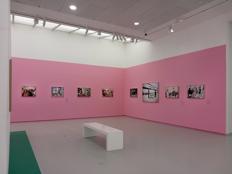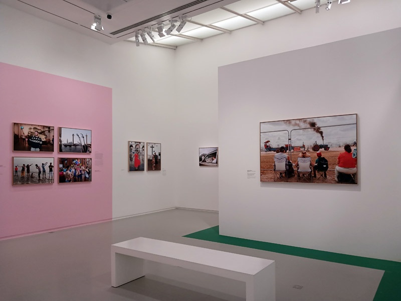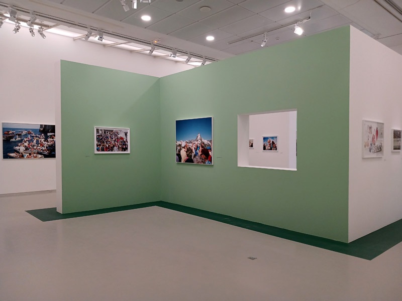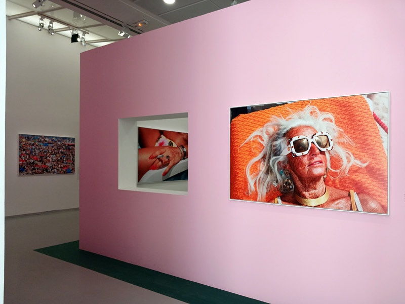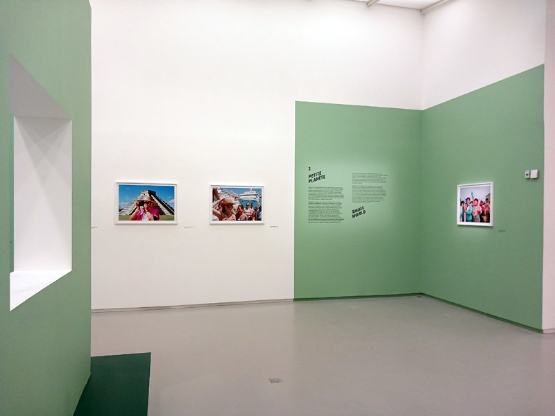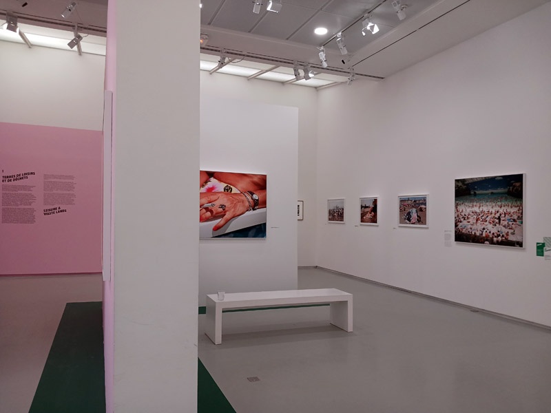 En quelque 180 oeuvres traversant plus de cinquante ans de production, de ses dĂ©buts en noir et blanc Ă des oeuvres rĂ©centes, l’exposition aborde, en 5 sections, nos turpitudes contemporaines, Ă travers des thèmes, des motifs, des obsessions rĂ©currentes. La façon dont les loisirs modifient l’environnement – du motif de la plage Ă celui des dĂ©chets, Parr a saisi les mutations que l’évolution de nos modes de vie modernes apporte aux paysages, oĂą le plaisir et le gaspillage, le naturel et l’artificiel coexistent et s’entremĂŞlent sans cesse. « Tout doit disparaĂ®tre » aborde l’univers consumĂ©riste qui est le nĂ´tre, Parr dressant un inventaire cru et drĂ´le de nos objets de dĂ©sirs et nos modes de consommation, envisagĂ© comme une forme de religion nouvelle.. Sous son objectif, supermarchĂ©s, centres commerciaux, foires et salons deviennent le théâtre d’une course effrĂ©nĂ©e partagĂ©e par toutes les classes sociales et impliquant les biens les plus divers, dans lequel l’humain lui-mĂŞme devient parfois marchandise. « Petite Planète », du nom de l’un de ses ouvrages les plus cĂ©lèbres, traite du tourisme, sujet de prĂ©dilection qu’il avait explorĂ©, sur tous les continents, tant dans ses plaisirs que dans ses contradictions, voire ses impasses. Dans les lieux les plus emblĂ©matiques du phĂ©nomène, il s’est intĂ©ressĂ© aux habitudes et aux comportements de ce touriste global, rĂ©alisant Ă©galement, en filigrane, une Ă©tude des dĂ©sĂ©quilibres Nord/Sud. Dans « Le règne animal », c’est, la cohabitation parfois difficile entre l’humain et l’animal qui est Ă©tudiĂ© et dĂ©crit, entre indiffĂ©rence et fascination, nĂ©gligence et surattention, violence et affection.