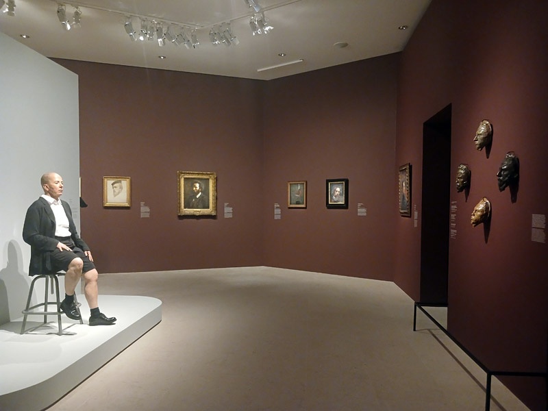 Le parcours s’ouvre sur une premiĂšre section dĂ©diĂ©e Ă  l’autoportrait, quintessence du portrait d’artiste, particuliĂšrement bien reprĂ©sentĂ© dans les collections du Petit Palais. Une galerie de visages, spectaculaire, accueille le visiteur dans la rotonde d’introduction. L’absence de commanditaire et l’introspection du modĂšle offrent aux crĂ©ateurs un espace de libertĂ© et d’expĂ©rimentation. En lien direct avec le spectateur, l’artiste affirme son style et expose sa personnalitĂ©, y compris au travers de portraits mĂ©taphoriques ou mĂ©tonymiques. On y dĂ©couvre les autoportraits de Gustave Courbet, Pierre Puvis de Chavannes, LĂ©on Bonnat, Jacques-Émile Blanche, entre autres ou encore les Ă©tonnants masques en grĂšs de Jean-Joseph CarriĂšs. L’oeuvre Autoportrait clown / fleur de Nina Childress et la sculpture hyperrĂ©aliste d’HĂ©lĂšne Delprat introduisent un effet de surprise tout en rĂ©interrogeant la tradition du genre aujourd’hui.
