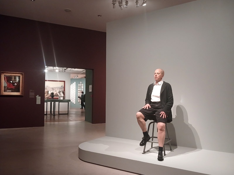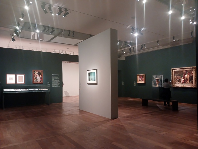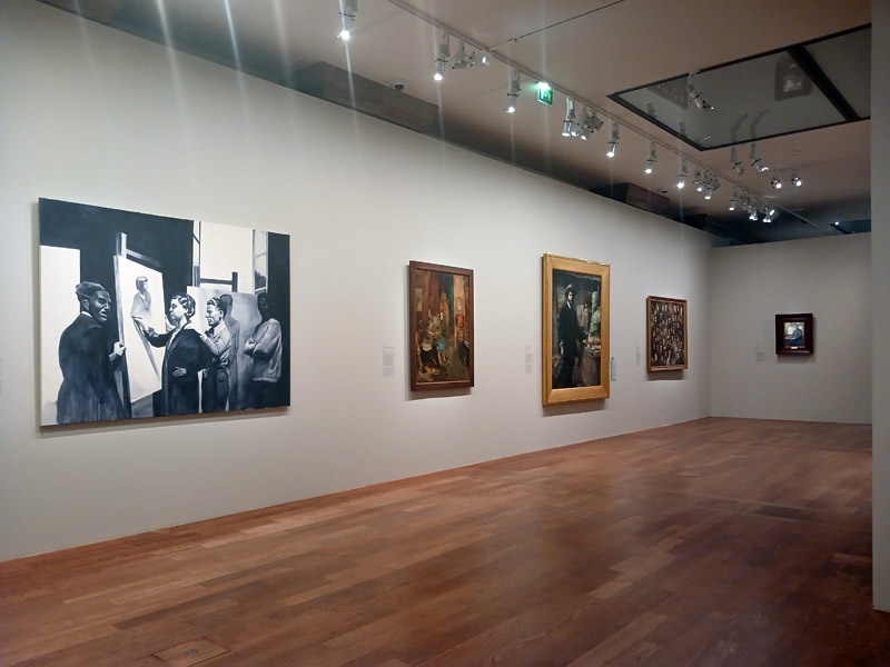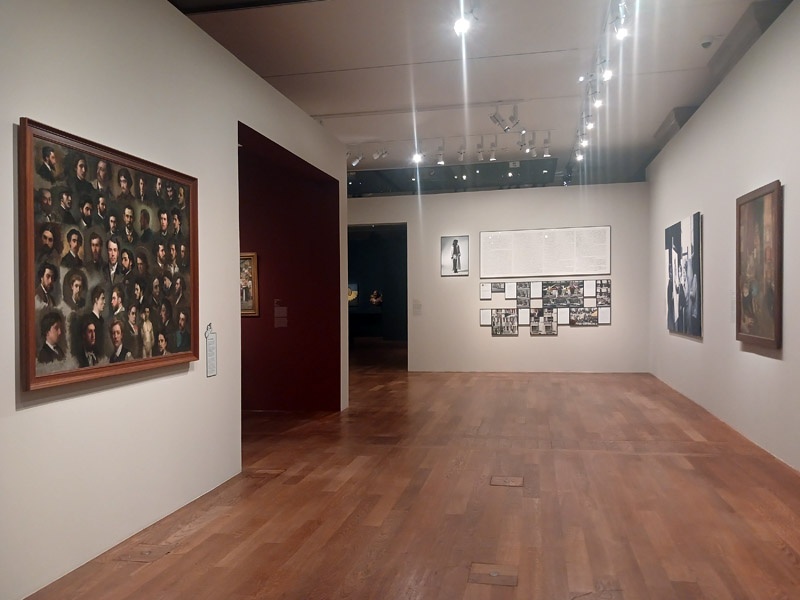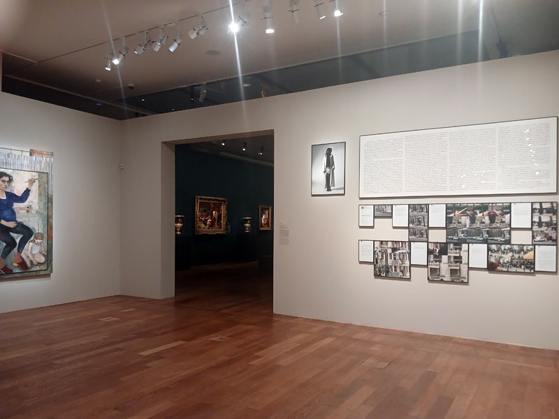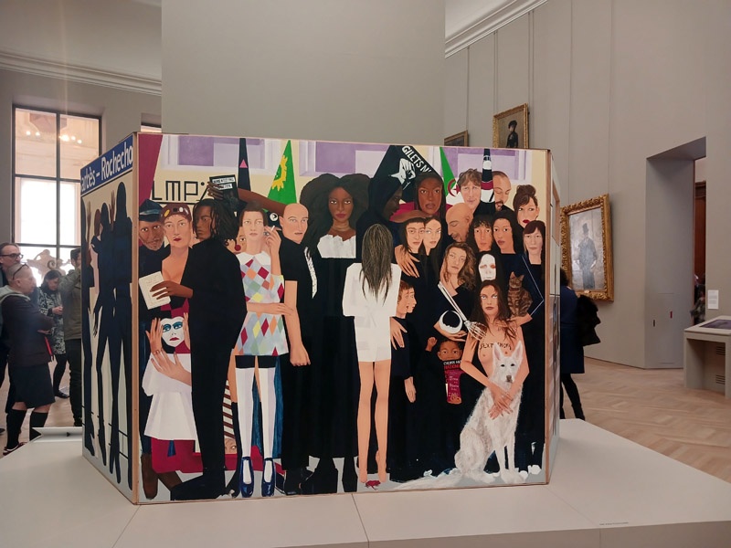 La fin du parcours explore le dialogue entre artistes et maĂźtres historiques comme Rembrandt, LĂ©onard de Vinci, Van Dyck, hommages ou parodies. Elle interroge Ă©galement les caricatures et l’humour dans le portrait. Cindy Sherman, Nan Goldin et Claire Tabouret dialoguent avec ces figures tutĂ©laires.