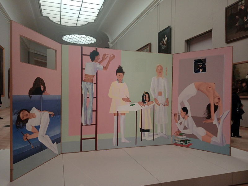 Au sein de l’exposition et jusque dans les collections permanentes du musĂ©e, les oeuvres de Giulia Andreani, Sophie Calle, Nina Childress, HĂ©lĂšne Delprat, Nan Goldin, Camille Henrot, NathanaĂ«lle Herbelin, Annette Messager, Françoise PĂ©trovitch, Anne et Patrick Poirier, Cindy Sherman, Apolonia Sokol et Claire Tabouret sont prĂ©sentĂ©es en regard des collections historiques. Leurs oeuvres convoquent un regard contemporain, celui du portrait d’artiste au fĂ©minin. Elles interrogent l’hĂ©ritage du portrait d’artiste, ses codes et ses usages, tout en proposant une rĂ©interprĂ©tation de ses enjeux. Par ce face Ă  face, un passĂ© rĂ©solument masculin dialogue avec le monde d’aujourd’hui oĂč l’artiste femme a dĂ©sormais pleinement sa place.