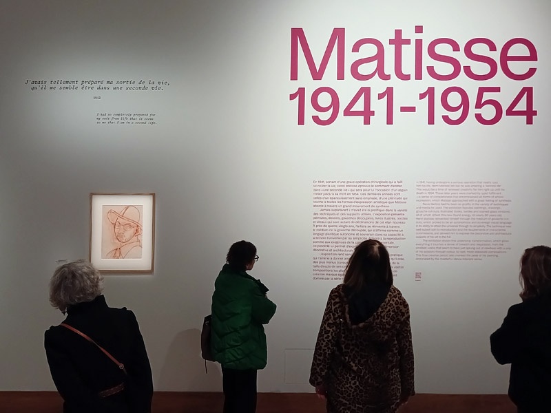 Dâune envergure inĂ©dite en France, lâexposition « Matisse, 1941 â 1954 » met en lumiĂšre les derniĂšres annĂ©es de crĂ©ation de lâartiste, grand moment de synthĂšse, de radicalitĂ© et dâinvention formelle. Elle rĂ©unit plus de 300 oeuvres qui tĂ©moignent de lâĂ©lan de crĂ©ation inouĂŻe de Matisse durant cette pĂ©riode particuliĂšrement foisonnante. Ă prĂšs de 80 ans, il se rĂ©invente avec le mĂ©dium de la gouache dĂ©coupĂ©e Ă travers lequel il renouvelle entiĂšrement son vocabulaire plastique et donne Ă son art une portĂ©e monumentale. Cette exposition conduit le visiteur dans le dernier grand atelier de Matisse, regroupant peintures, sĂ©rie de dessins, livres illustrĂ©s, gouaches dĂ©coupĂ©es, textiles et mĂȘme vitraux qui sont autant de dĂ©clinaisons de cet ultime moment de grĂące.