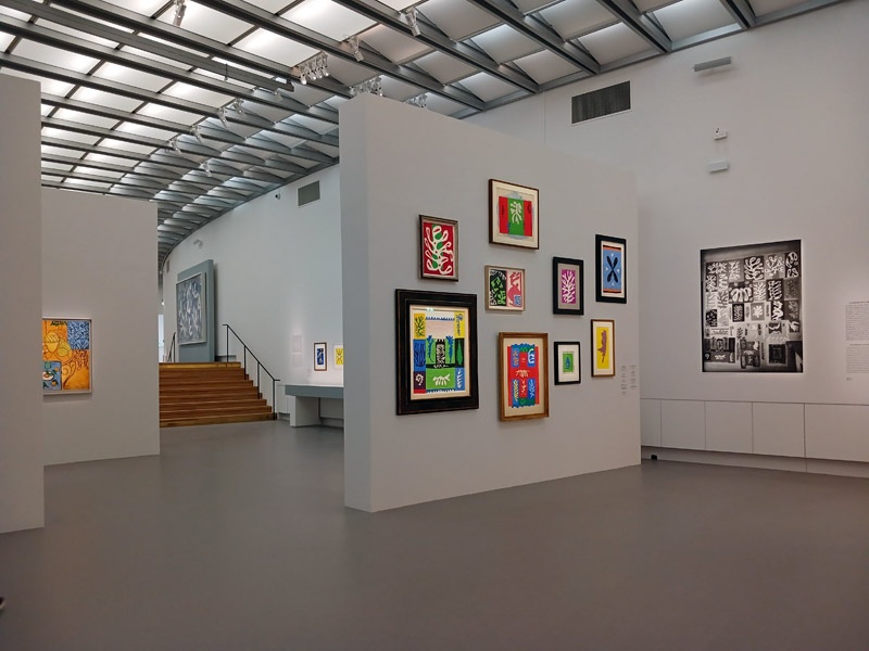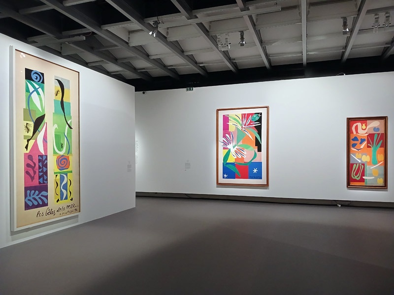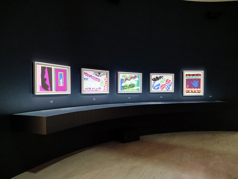 L’exposition rĂ©unit les ensembles essentiels de cette pĂ©riode : la magistrale et ultime sĂ©rie des peintures des IntĂ©rieurs de Vence de 1946-1948, lâalbum Jazz et sa maquette, des sĂ©ries de dessins de ThĂšmes et Variations, les dessins au pinceau et Ă lâencre, les principaux Ă©lĂ©ments du programme de la chapelle de Vence, les panneaux monumentaux La Gerbe, Les Acanthes, LâEscargot et MĂ©moire dâOcĂ©anie. Enfin, les grandes figures en gouache dĂ©coupĂ©e, comme La Tristesse du roi, Zulma, Danseuse crĂ©ole et la sĂ©rie des Nus bleus sont ici, exceptionnellement, rĂ©unies.